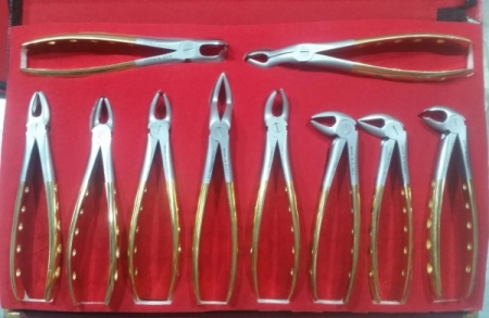 Extraction Forceps Gold Handle and Matt Dull Finshing Sliver Colours