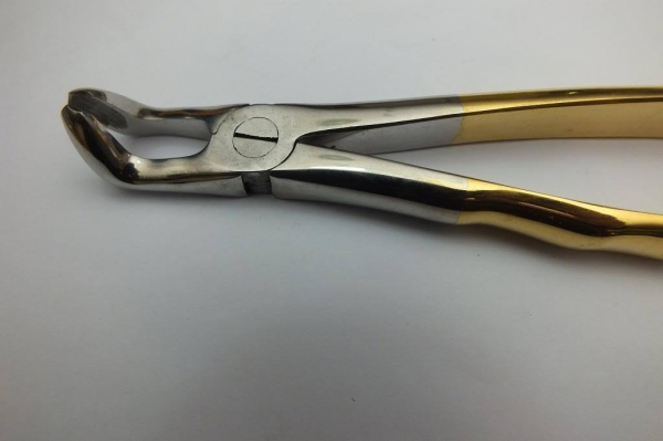 • Dental Instruments » Extraction Forceps (English ) » Dental Premium Forceps Lower Wisdom Holed Golden Anatommical No 79