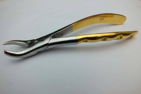 • Dental Instruments » Extraction Forceps (English ) » Dental Forceps Cow Horn Upper Molor Left Cow Horn Light Waight Holed Golden No.9