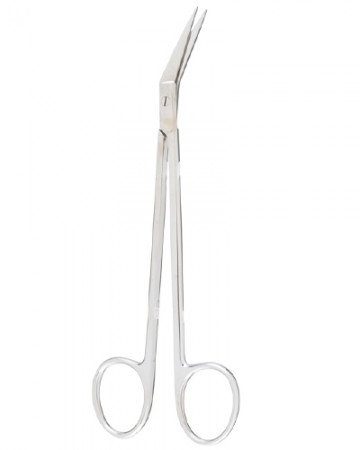 Gum Scissors Angled on side 25 degrees, one serrated blade